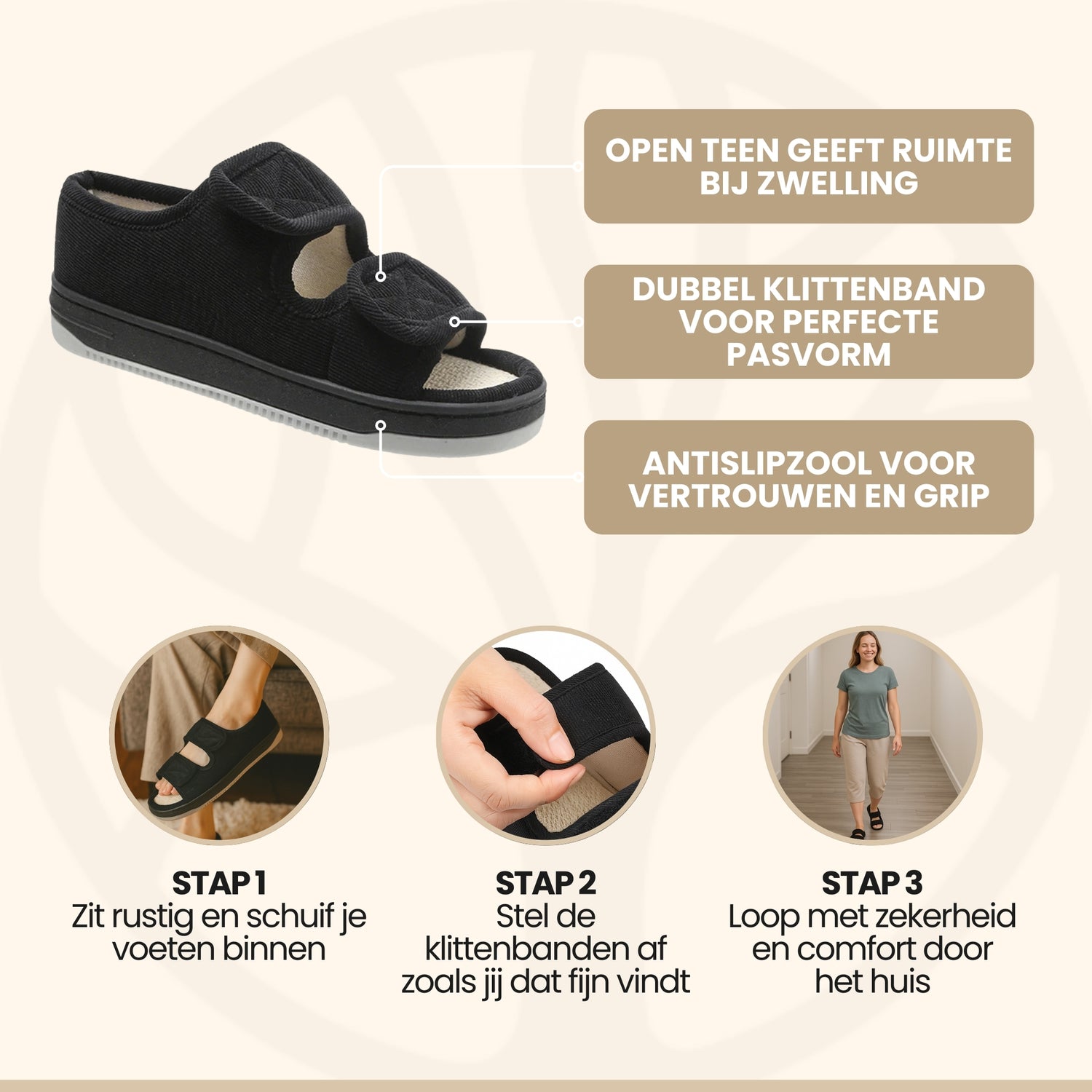 EasyStride Slippers | Orthopedisch Comfort – Met Klittenbandsluiting